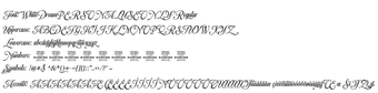 يتضمن هذا الخط أيضًا تباينات أسلوبية دقيقة، مما يسمح للمستخدمين بتخصيص طباعة النص الخاصة بهم لتناسب احتياجات محددة، سواء كان ذلك لتسليط الضوء على التفاصيل المزخرفة أو اعتماد نهج بسيط. إن قابليته للتكيف تجعل White Dream مثاليًا لشعارات الموضة، وتغليف المتاجر، ومشاريع إبداعية أخرى تهدف إلى لمسة خالدة وشخصية. مع مزيج جذاب من الجمال والوضوح، يعزز العناوين، واللافتات، والبضائع الأنيقة.